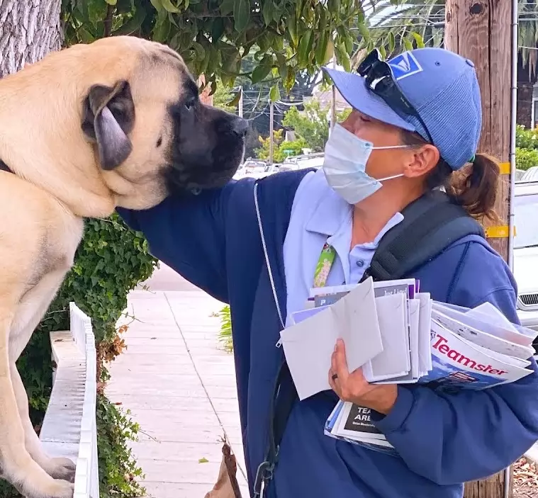 180-Pound Dog Waits Every Day To Give Favorite Mailwoman A Hug