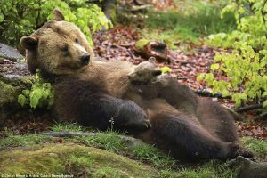 The tiny brown bear was spotted tenderly kissing his mother while enjoying some quality time with her. Tr.agically, the cub recently lo.st his only two siblings…!