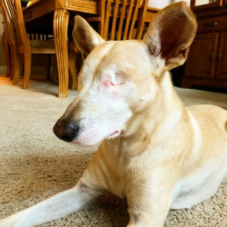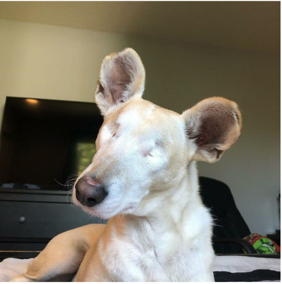 Just like any blind dog, Cabo still loves life and his family. He is showing the world that losing your eyes is not the worst thing if you have a loving family around to snuggle with and get scratches from.