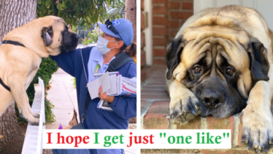180-Pound Dog Waits Every Day To Give Favorite Mailwoman A Hug A Bull Mastiff named Fronky has the same…