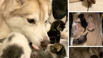 Touching Moment! These Tiny Orphan Kitties Hug a Husky & Thought It Was Mom