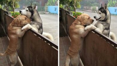 Lonely Husky Escapes From His Yard To Go Hug His Best Friend
