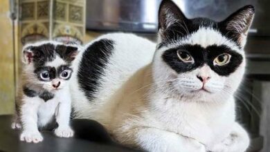 The cat who looks like Zorro, the masked movie character, has welcomed a kitten who shares the same Zorro mask as…