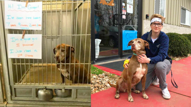 Read more .. After a solitary existence spanning seven years, the forlorn canine finally finds solace as it is embraced…